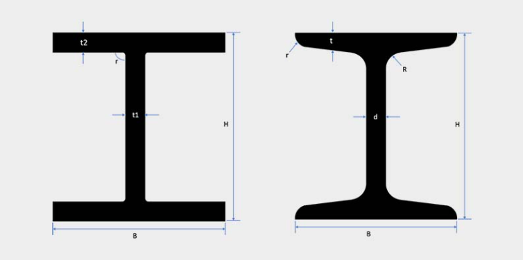 Thép hình I (I-Beams) Thép hình H (H-Beams)