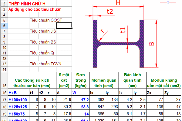 Quý khách hàng có thể xem cụ thể thông tin về: Thông số thép H, trọng lượng thép hình chữ H ở dưới đây