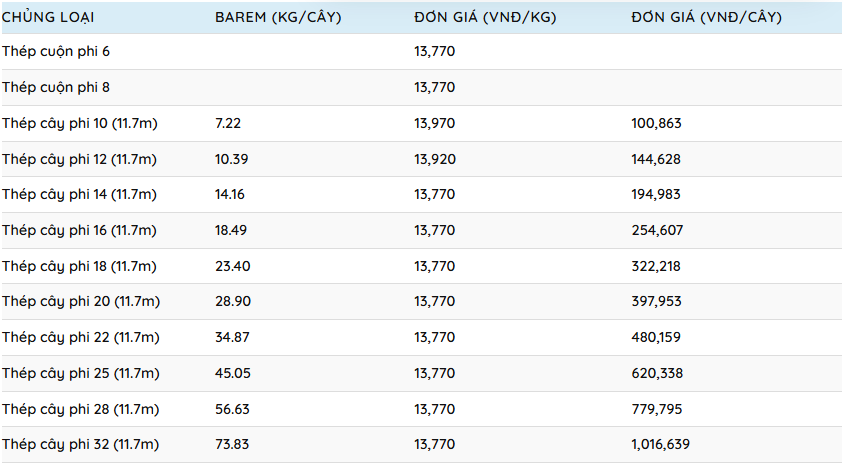 BẢNG GIÁ THÉP MỸ-SHENGLI (VMS)