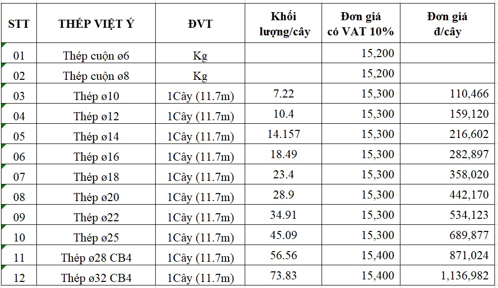 BẢNG GIÁ THÉP DUY LINH