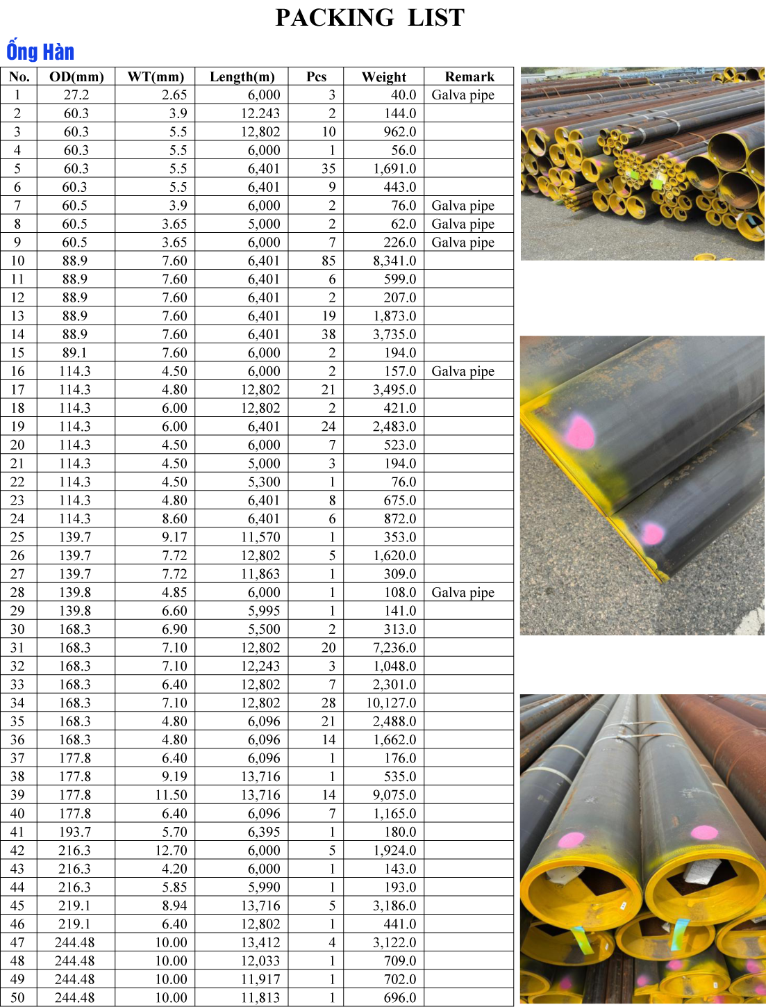 Tiêu chuẩn: ASTM A53, ASTM A106, API 5L, JIS G3444....
