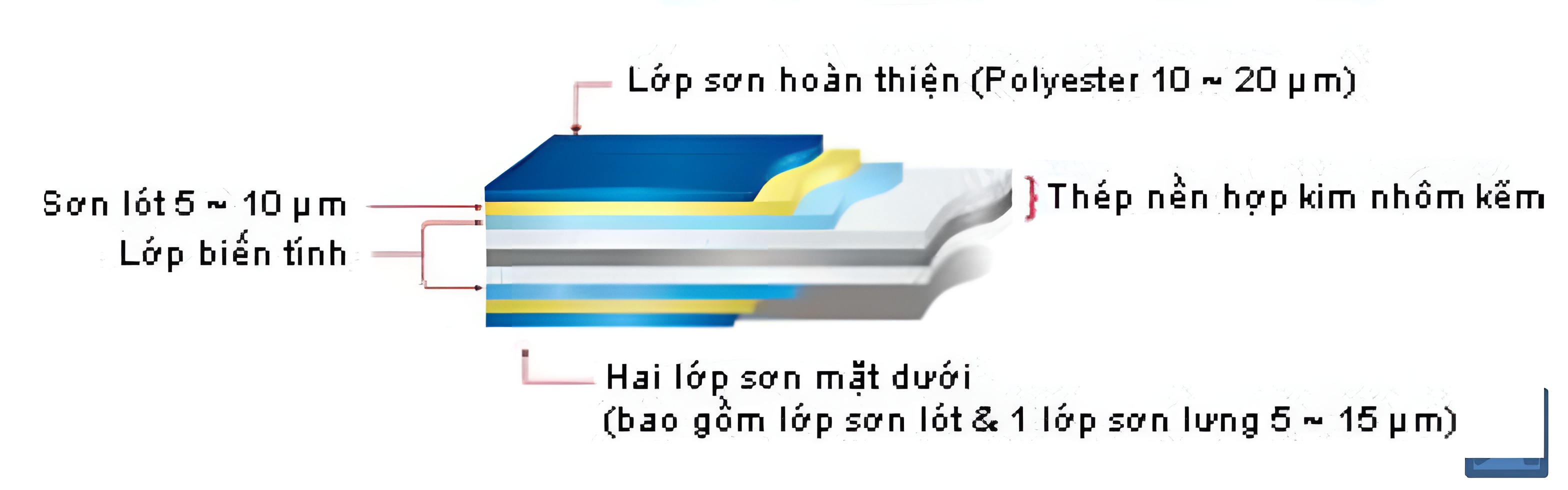 • Lớp thép nền: Thành phần chính tạo độ cứng và độ bền cho sản phẩm.